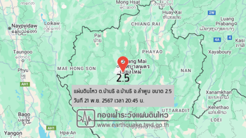เมื่อเวลา 20.45 น.วันที่ 21 พ.ย.2567 กองเฝ้าระวังแผ่นดินไหว มีรายงานเหตุการณ์แผ่นดินไหว บริเวณ ต.บ้านธิ อ.บ้านธิ จ.ลำพูน โดยมีจุดศูนย์กลางอยู่ที่ละติจูด 18.635°N , ลองจิจูด 99.120°E มีขนาด 2.5 และลึกลงไปประมาณ 1 กิโลเมตร