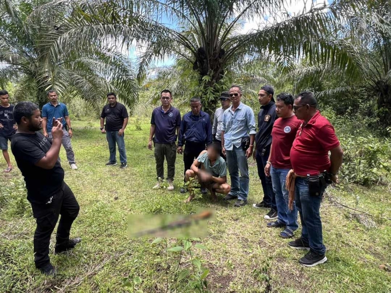 เจ้าหน้าที่สามารถรวบตัวผู้ต้องหาได้ที่หน้าบ้านพัก พร้อมตรวจยึดหลักฐานสำคัญ ได้แก่ เสื้อผ้าที่ใช้วันก่อเหตุ มีดพกปลายแหลมยาว 5 นิ้ว รถจักรยานยนต์ที่ใช้หลบหนี และอาวุธปืนยาวขนาด .22 พร้อมกระสุน 6 นัด ซึ่งเป็นปืนของผู้ตายที่ผู้ก่อเหตุนำไปซุกซ่อนไว้ในสวนปาล์ม