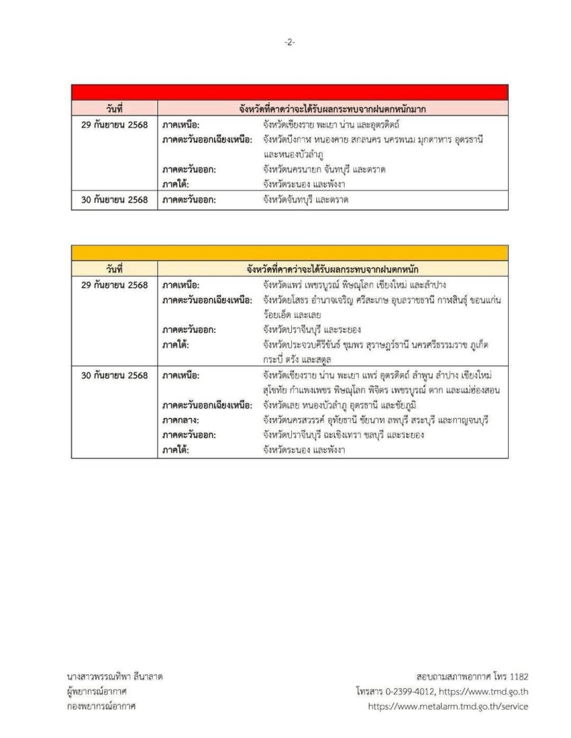 มีผลกระทบต่อไทย วันที่ 29-30 ก.ย. 2568
