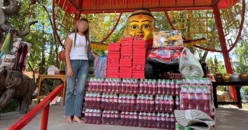 สาวดวงปัง ถวายพิซซ่า 50 ถาด แก้บนกุมารทองเจ้าสัวเฮง ปลดหนี้แสนกว่า คอเลขไม่พลาดแห่ส่องอ่างน้ำมนต์ลุ้นโชค