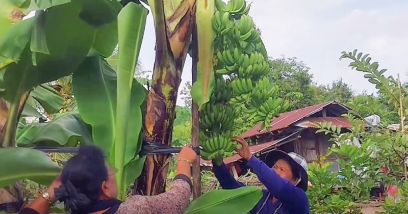 กล้วย 2 เครือ 22 หวีในต้นเดียว นักเสี่ยงโชคแห่ลูบแป้งหาเลขมงคล