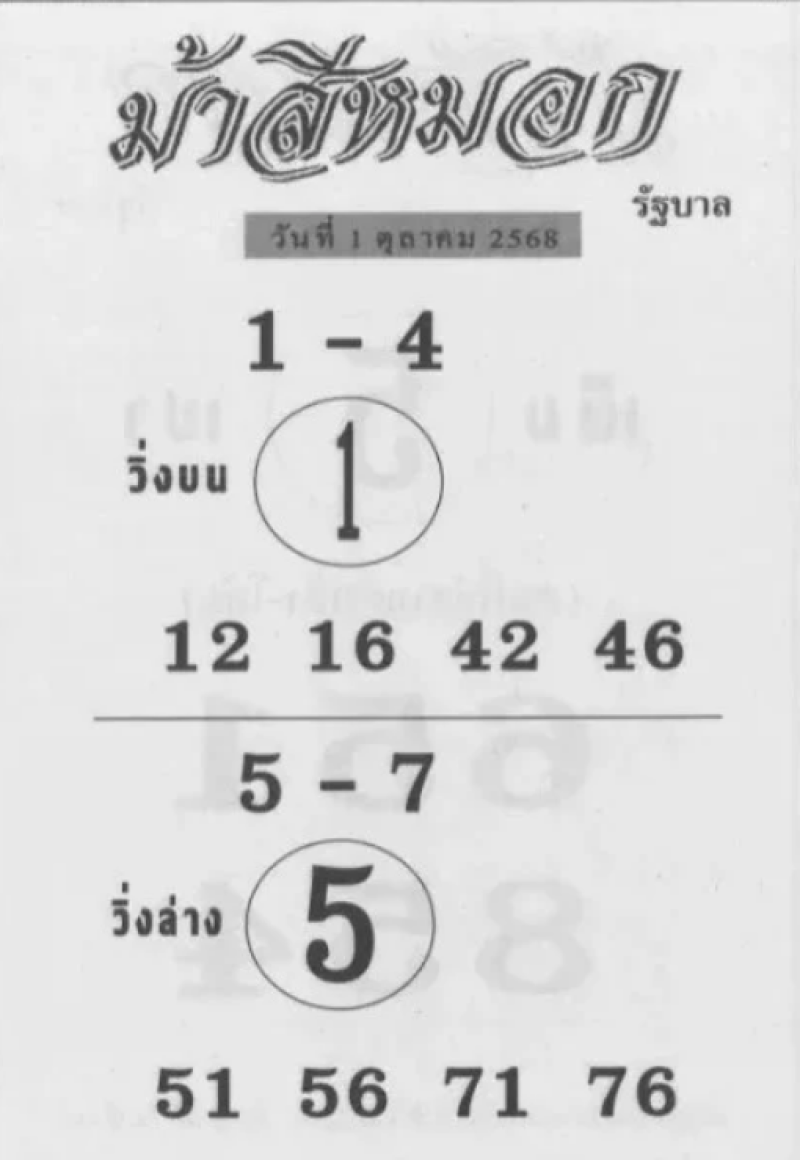 เลขม้าสีหมอก งวดนี้ 1 ต.ค. 68