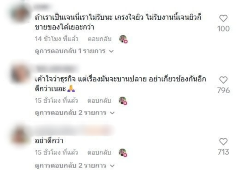 อย่างไรก็ตามชาวเน็ตเสียงแตก ดราม่ารับงานอดีตแฟน ส่วนใหญ่เห็นตรงกันว่า เข้าใจว่าเป็นธุรกิจ แต่เกรงใจสามีบ้าง