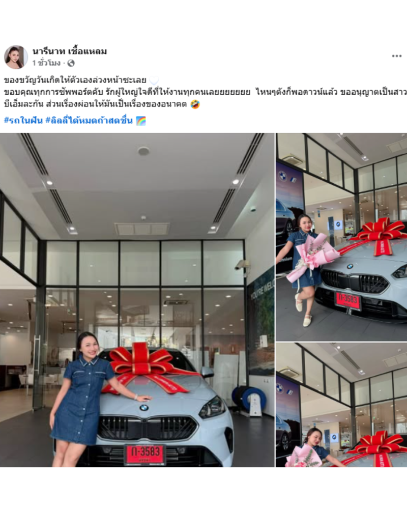 นารีนาท เชื้อแหลม หรือ ลิลลี่ ได้หมดถ้าสดชื่น จัดของขวัญวันเกิดให้ตัวเองล่วงหน้าแบบสายปังสุด ๆ ด้วยการโพสต์ภาพรถหรูคู่ใจ พร้อมแคปชั่นสุดชิลว่า