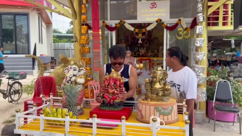 พระพิฆเนศ 5 เศียร ให้โชค พ่อค้าถวายบูชาเบิกเนตร-เลขธูปโผล่กลางพิธี ชาวบ้านแห่ขอพรแน่นเทวาลัย