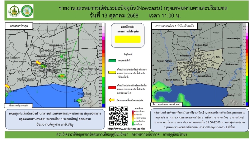 วันที่ 13 ต.ค.2568 ทางกรมอุตุนิยมวิทยาได้อัปเดตกลุ่มฝนล่าสุด เมื่อเวลา 11.00 น.