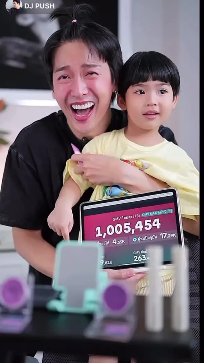 ความปังยังไม่หมดเท่านั้น เพราะเจ้าตัวยังได้ไลฟ์ต่ออีกรอบ โดยมี น้องพีร์เจ ลูกชายสุดน่ารักมาช่วยขายของด้วย เพิ่มความอบอุ่นและเป็นกันเองให้กับแฟน ๆ ที่แห่เข้ามาคอมเมนต์ให้กำลังใจแน่นไลฟ์ ส่งผลให้ยอดขายพุ่งทะลุ 1.5 ล้านบาทภายในเวลาไม่นาน