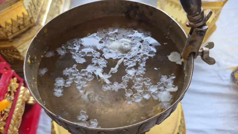 นอกจากทำบุญแล้ว ชาวบ้านจำนวนมากยังได้ร่วมส่อง ขันน้ำพระพุทธมนต์ และ ธูปมงคล ที่จุดในพิธีเพื่อเป็นแนวทางเสริมโชคลาภ โดยธูปมงคลที่เผาเสร็จปรากฏเลข 673 อย่างชัดเจน หลายคนต่างบันทึกไว้ด้วยความศรัทธา หวังเป็นสิริมงคลก่อนวันประกาศรางวัลใหญ่กลางเดือนนี้