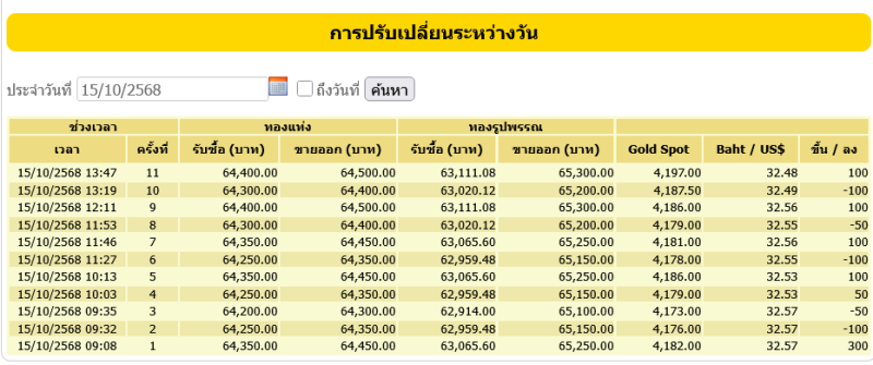 ราคาทองคำ วันที่ 15 ตุลาคม 2568