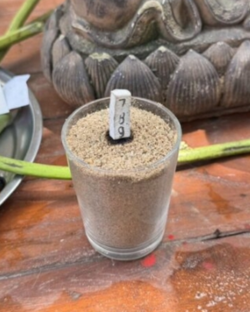 ต่อมา ร่างทรงประจำพื้นที่ได้ทำพิธีเบิกเนตร พร้อมให้ชาวบ้านนำแผ่นทองมาปิดบูชา ก่อนมีการจุดธูปเสี่ยงทายและปรากฏตัวเลข 789 ซึ่งชาวบ้านต่างเก็บไปลุ้นโชคตามความเชื่อ.
