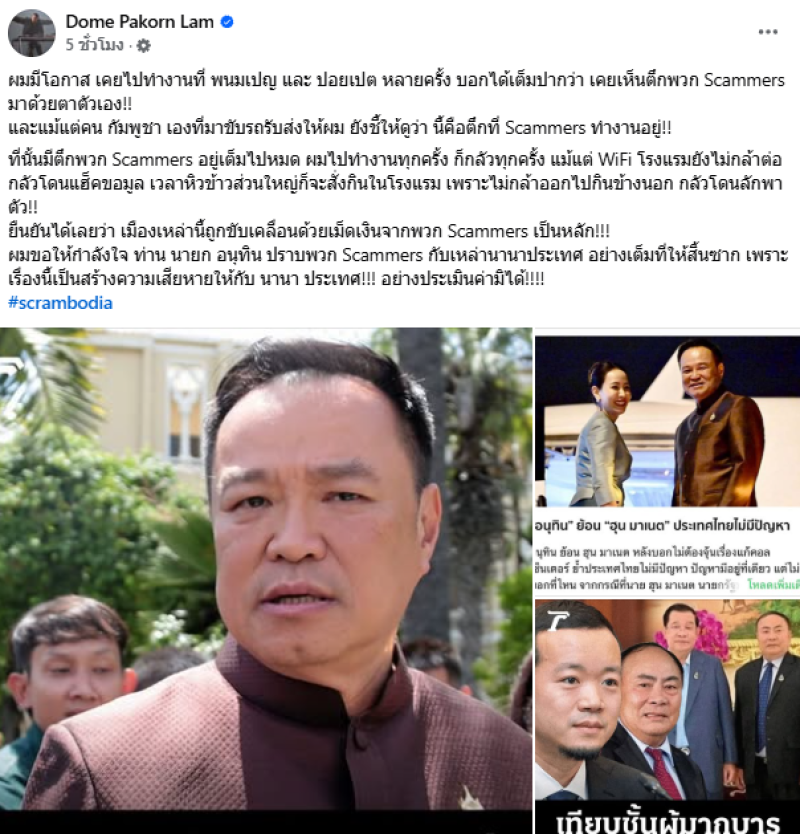 โดม ปกรณ์ ลัม แฉหมดเปลือก! เห็นกับตาในเขมร ฝากถึงนายกฯ อนุทิน