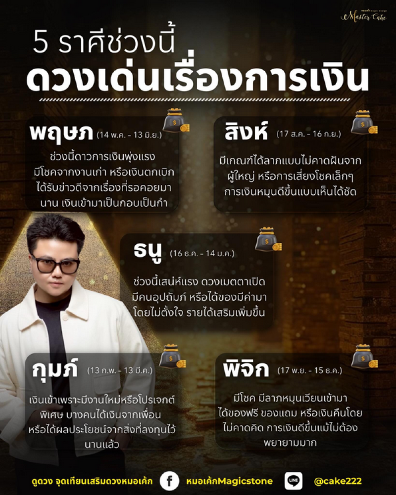 จากกรณี เพจ หมอเค้กดลบันดาล เผยดวงชะตาราศี ดวงเด่นเรื่องการเงิน ดาวการเงินพุ่งแรง มีโชคจากงานเก่า หรือเงินตกเบิก ได้รับข่าวดีจากเรื่องที่รอคอยมานาน เงินเข้ามาเป็นกอบเป็นกำ มีเกณฑ์ได้ลาภแบบไม่คาดฝันจากผู้ใหญ่ หรือการเสี่ยงโชคเล็กๆ การเงินหมุนดีขึ้นแบบเห็นได้ชัด ช่วงนี้เสน่ห์ ดวงเมตตาเปิด มีคนอุปถัมภ์ หรือได้ของมีค่ามาโดยไม่ตั้งใจ รายได้เสริมเพิ่มขึ้น