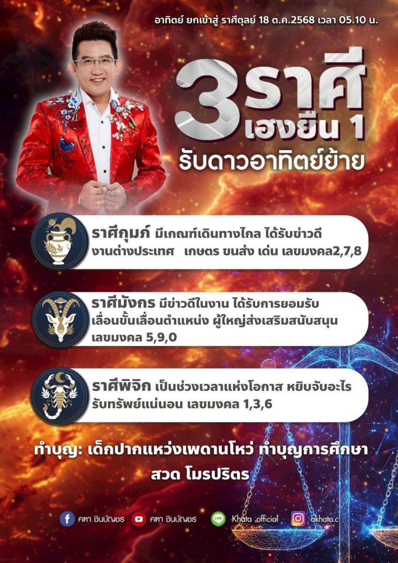 อ.คฑา ชินบัญชร เปิด 3 ราศี ดวงเฮงยืนหนึ่ง จะมีข่าวดี เตรียมรับทรัพย์