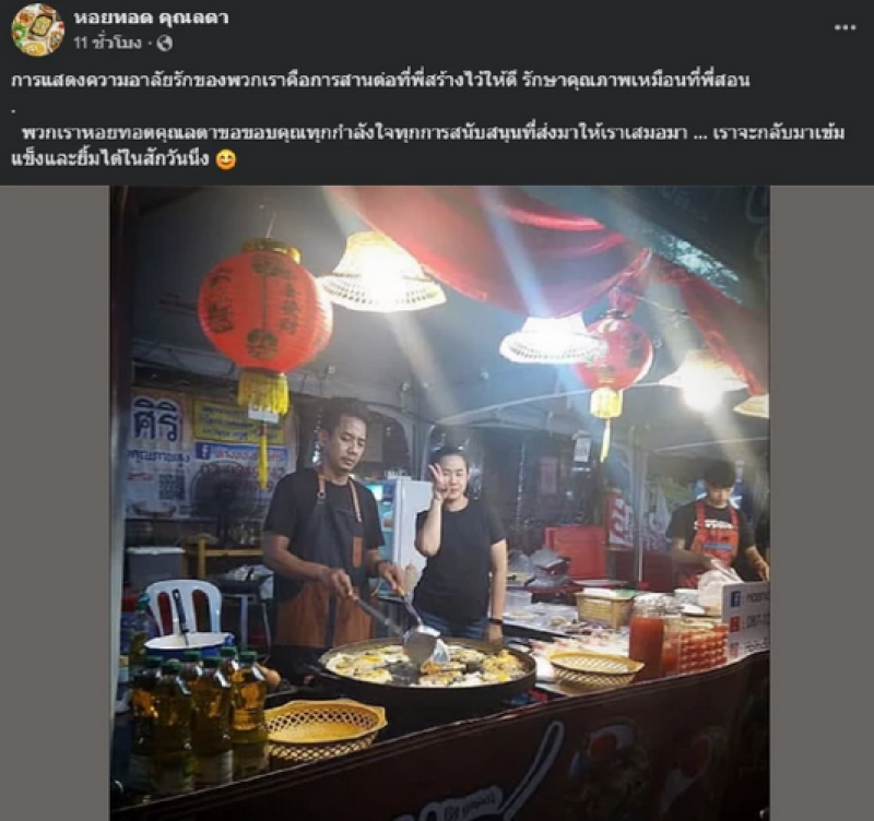 ภรรยาของคุณเมธได้กล่าวด้วยความมุ่งมั่นว่า เธอจะ สานต่อเจตนารมณ์ของสามี และรักษามาตรฐานความอร่อยของ หอยทอดคุณลดา ไว้เหมือนเดิม พร้อมบอกว่า จะกลับมายิ้มได้อีกครั้งในสักวัน