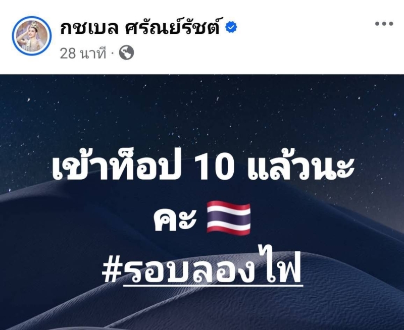 คลิปล่าสุดที่กองประกวดปล่อยออกมา 10 10 10 งานนี้เรียกได้ว่าสวยสะกด ควีนทุกองศา แฟน ๆ แห่กดไลก์ให้กำลังใจรัว ๆ ล่าสุด กชเบล ยังโพสต์ภาพพร้อมแคปชั่นมั่นใจว่า