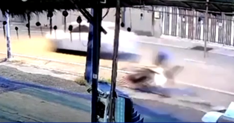 เก๋งพุ่งชนจยย.เจ้าหน้าที่อำเภอศรีราชา ดับกลางถนน วงจรปิดจับภาพชัด