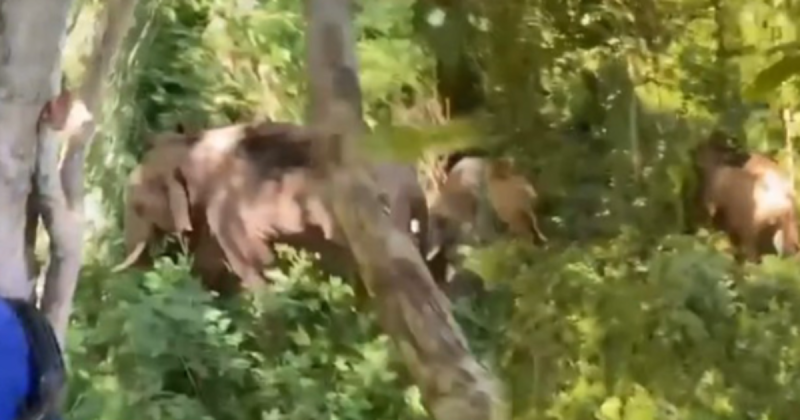 ชาวบ้านหาเห็ดผงะเจอโขลงช้าง 8 ตัว วิ่งหนี-ปีนต้นไม้หนีเอาตัวรอด จุดประทัดไล่ ปลอดภัยหวุดหวิด!