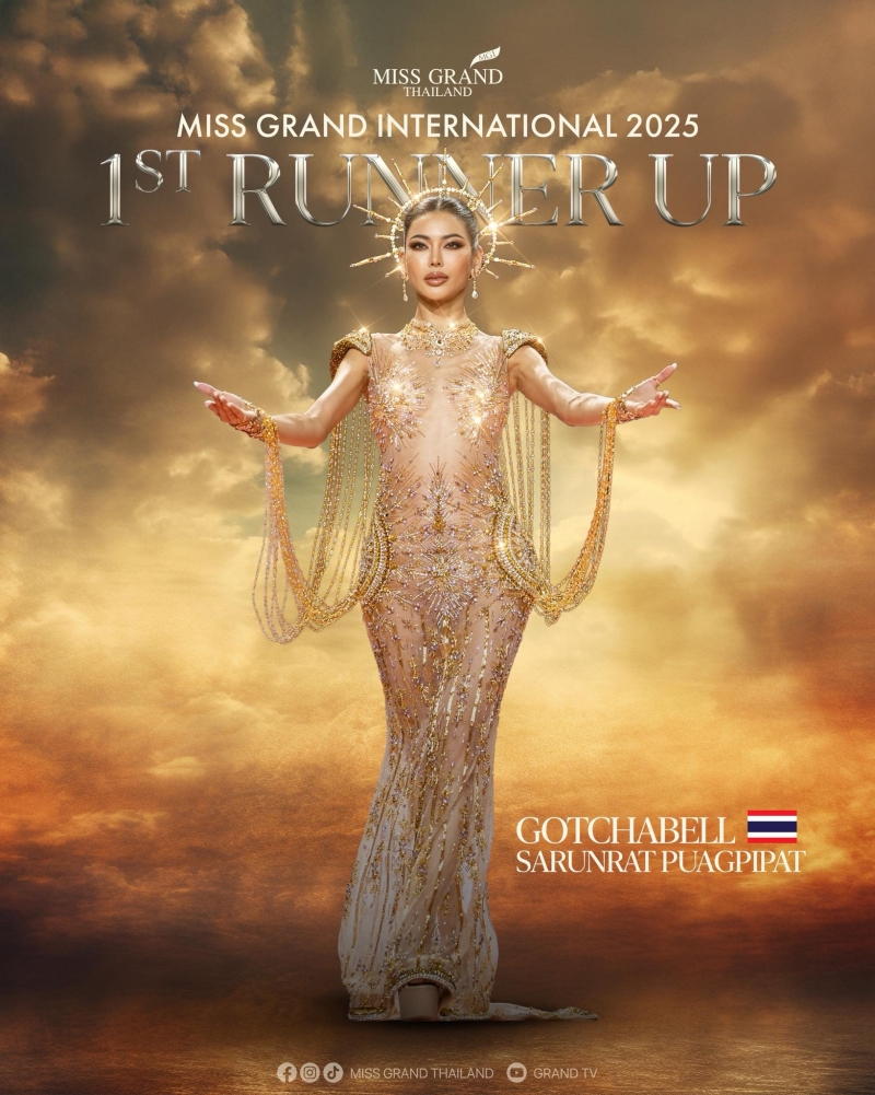 ปรบมือรัว ๆ ให้กับ กชเบล ศรัณย์รัชต์ เผือกพิพัฒน์ มิสแกรนด์ไทยแลนด์ 2025 ตัวแทนสาวไทยบนเวที Miss Grand International 2025 ที่สร้างชื่อเสียงให้ประเทศได้อย่างสมศักดิ์ศรี โดยในปีนี้ กชเบลสามารถทะลุเข้ารอบลึกไปถึงรอบจับมือกับ เอ็มม่า แมรี่ ทิกเลา ก่อนคว้าตำแหน่ง รองอันดับ 1 ไปครอง พร้อมควบอีกสองรางวัลใหญ่ ชุดประจำชาติยอดเยี่ยม และ ชุดว่ายน้ำยอดเยี่ยม ถือเป็นผลงานระดับโลกที่คนไทยภูมิใจสุด ๆ