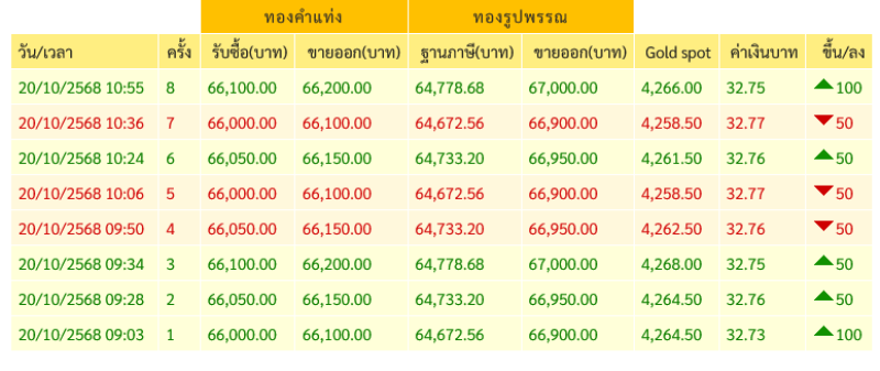 ราคาทองวันนี้ 20 ต.ค.68 พุ่งขึ้นอีก ปรับครั้งที่ 8