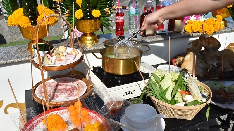 เมื่อถึงช่วงถวายของแก้บน เธอได้ตั้งจิต กล่าวคำถวาย และเปิดแก๊สต้มน้ำซุปจนเดือด ก่อนคีบหมูและผักใส่หม้อปรุงสด ๆ แล้วตักใส่ถ้วยถวายต่อหน้าอนุสาวรีย์พ่อพระยาพิชัยดาบหัก ท่ามกลางสายตาผู้คนที่มาร่วมพิธีอย่างศรัทธา