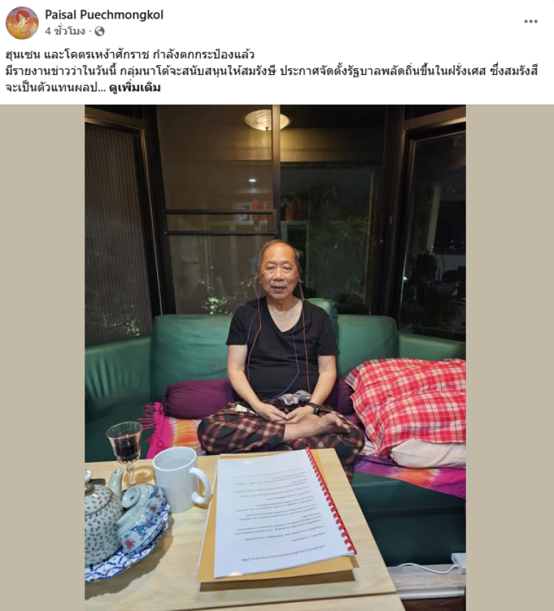 วันที่ 23 ตุลาคม 2568 นายไพศาล พืชมงคล นักกฎหมาย ได้ออกมาโพสต์ข้อความผ่านเฟซบุ๊ก ชื่อ Paisal Puechmongkol ถึงฮุน เซน โดยระบุว่า ฮุนเซน และโคตรเหง้าศักราช กำลังตกกระป๋องแล้ว