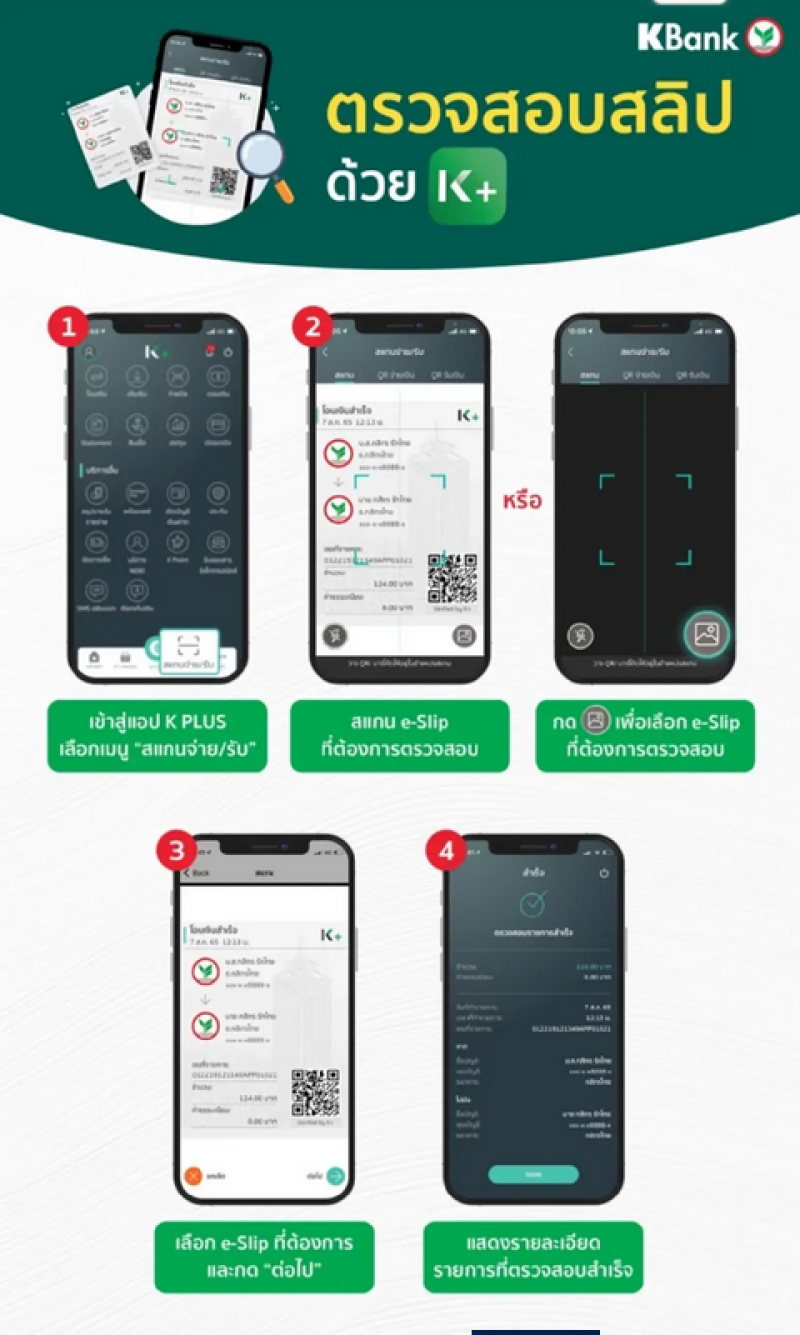 วิธีการตรวจสอบสลิปการโอนเงินผ่าน K PLUS (e-Slip)