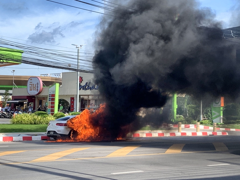 ใจหาย! ไฟไหม้เบนซ์วอดทั้งคัน ควันดำท่วม ต่อหน้าต่อตา เสียหายกว่า 3 ล้าน