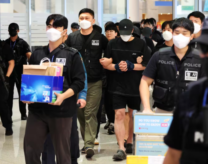 และจับชาวต่างชาติได้ 86 คน โดยเป็นชาวเกาหลีใต้ 57 คน และชาวจีน 29 คนนั้น โดยกระทรวงการต่างประเทศเกาหลีใต้ออกแถลงการณ์ในวันที่ 23 ต.ค. 68 ว่า ชาวเกาหลีใต้มากกว่า 50 คนในรายงานข่าว เป็นผู้ที่ถูกจับกุมไปตั้งแต่ก่อนหน้านี้แล้ว ไม่ใช่การจับกุมเพิ่มเติม ล่าสุดรัฐบาลเกาหลีใต้ออกมาปฏิเสธว่า ไม่เป็นความจริงแต่อย่างใด