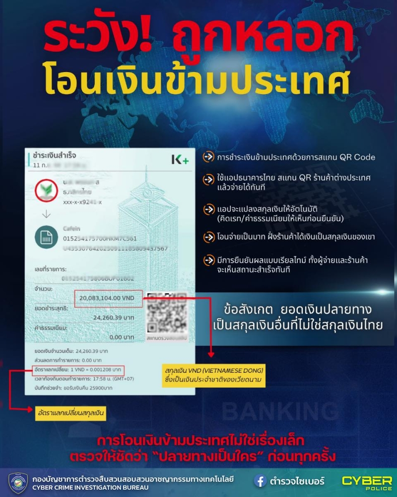 ตำรวจไซเบอร์เตือน! กลลวงสแกนจ่ายต่างประเทศ เงินปลิวเข้ามือมิจฉาชีพ อย่าเพิ่งกดยืนยันถ้าไม่แน่ใจ!