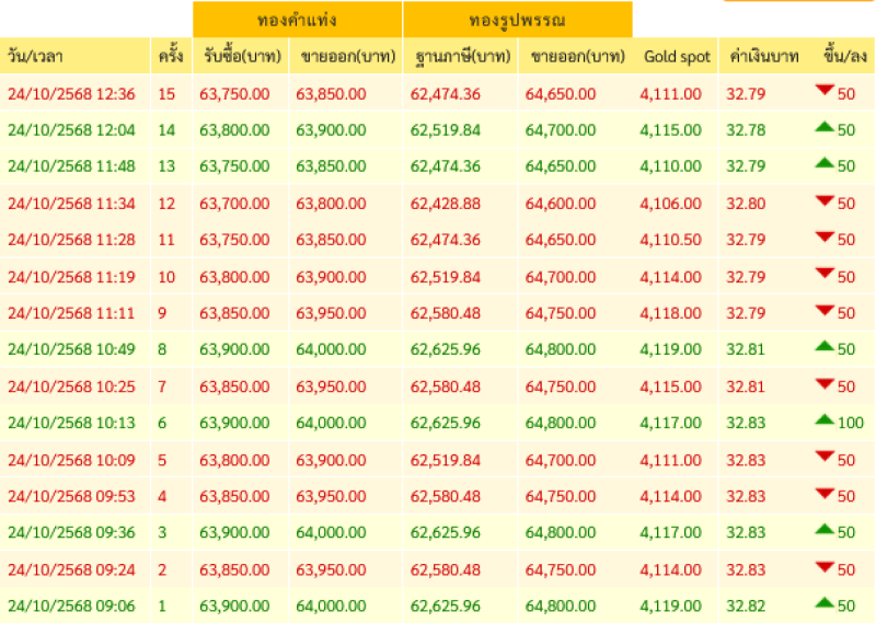 ราคาทองคำ วันที่ 24 ตุลาคม 2568 เวลา 12:36 น.(ครั้งที่ 15)