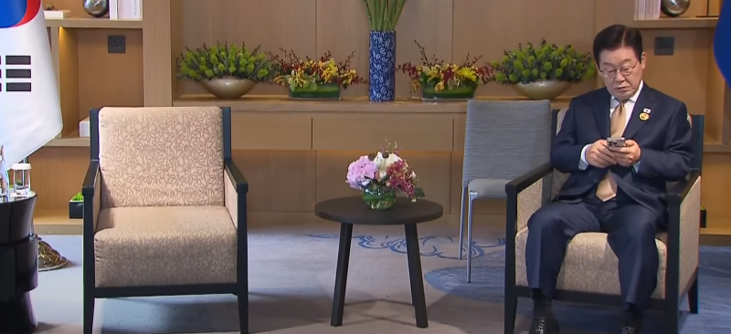 โดย สื่อ KBS ของเกาหลีใต้รายงาน ประธานาธิบดีอี แจมยอง นั่งรอนายกรัฐมนตรีฮุน มาเนตของกัมพูชา ที่เข้ามาสายถึง 9 นาที ซึ่งในคลิปวิดีโอนั้น ประธานาธิบดีเกาหลีใต้เข้ามานั่งรอ พูดคุยกับเจ้าหน้าที่ ดื่มน้ำ และเล่นโทรศัพท์มือถือ รอเวลา